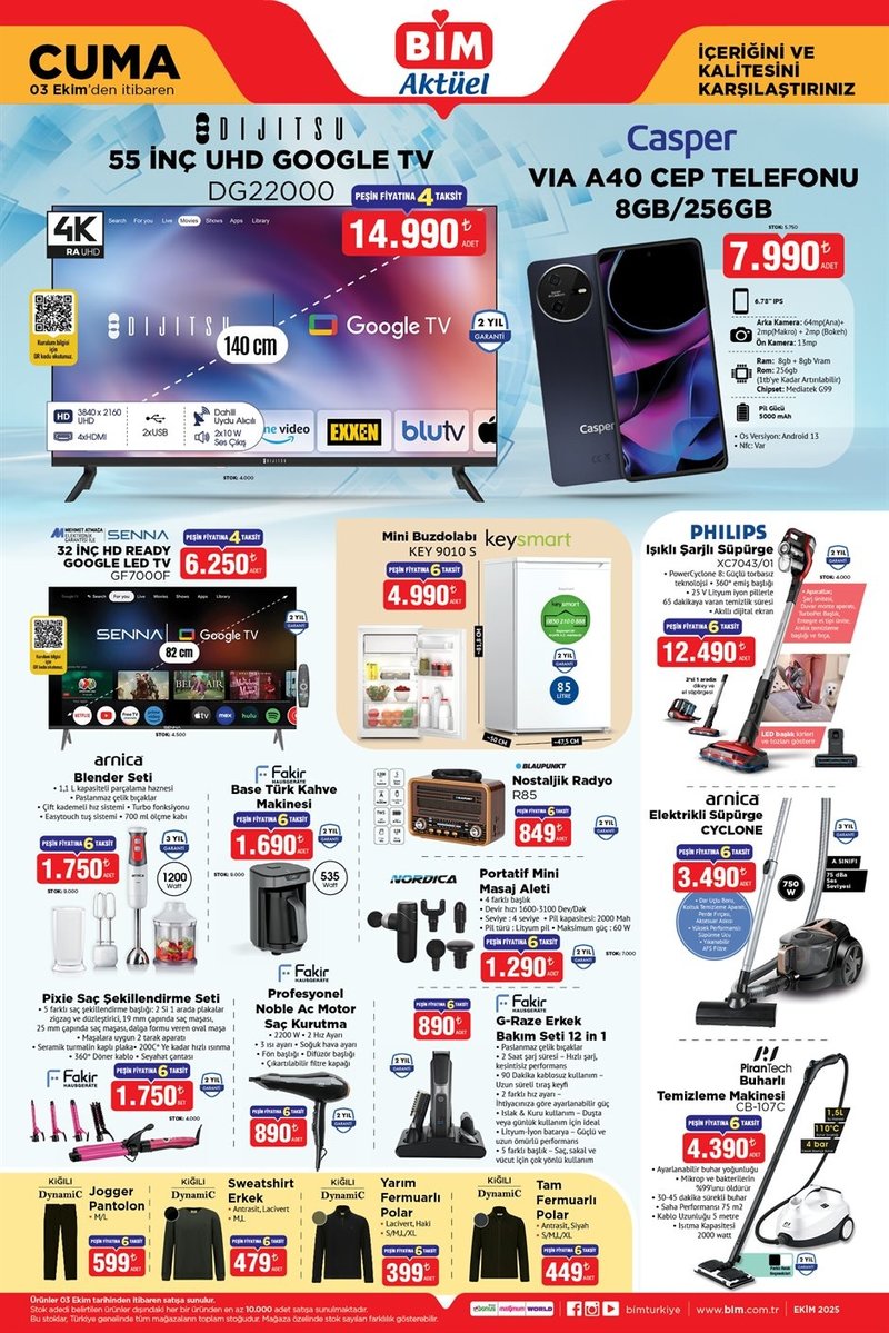 BİM 3 EKİM CUMA AKTÜEL KATALOĞU 📌 Bim’de bu cuma hangi ürünler satışa çıkacak? Dijitsu 55 İnç UHD Google TV, Ütü Masası, Mini Buzdolabı…