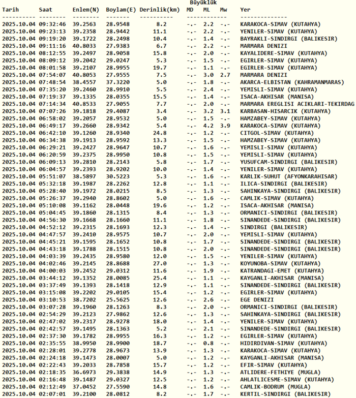 DEPREM Mİ OLDU 4 EKİM? | Coğrafi konumu sebebiyle deprem kuşağında yer alan ülkemizin maruz kaldığı büyüklü küçüklü çok sayıda sarsıntı, vatandaşları deprem kontrolünü rutin hale getirmeye teşvik etti. Kuzey Anadolu Fay Hattı, Doğu Anadolu Fay Hattı, Batı Anadolu Fay Hattı ve Kuzey Anadolu Sıradağları gibi farklı fay hatlarında meydana gelen depremler, art arda ve yüksek şiddette yeni sarsıntıların yanı sıra çok sayıda artçıları da doğuruyor. İşte 4 Ekim Cumartesi son dakika deprem haberleri, ve AFAD, Kandilli Rasathanesi son depremler, artçı depremler ve büyüklükleri…
