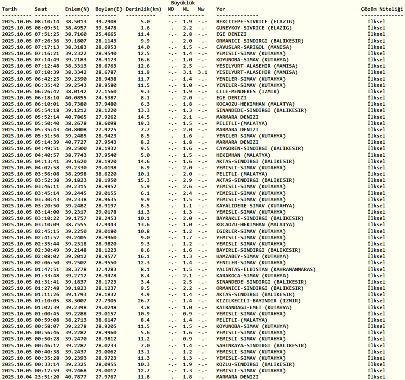 5 EKİM’DE MEYDANA GELEN DEPREMLER