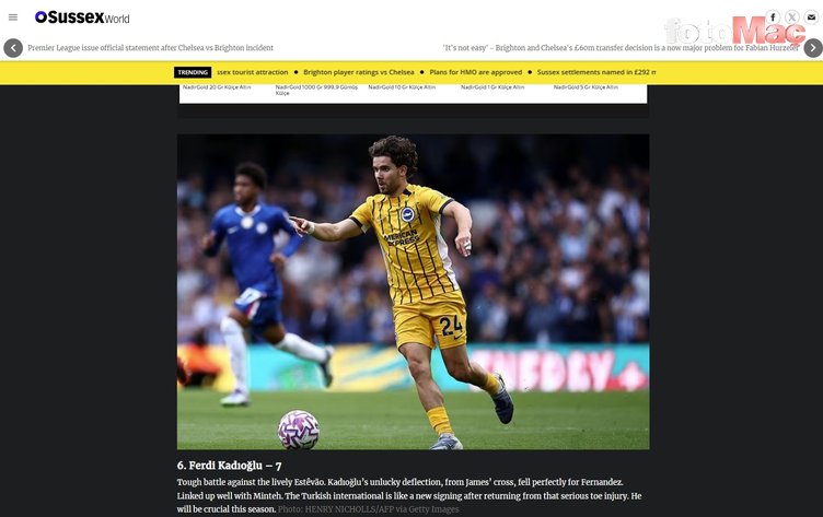 Sussex Express’te yer alan haberde milli futbolcu, 10 üzerinden 7 puan alarak eleştirmenlerden geçer not aldı. Ferdi Kadıoğlu hakkında yazılan yazıda şu ifadeler kullanıldı: