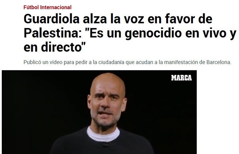 İspanyol basınından Marca’da yer alan habere göre Guardiola, yaptığı açıklamada insanlığın gözleri önünde büyük bir trajedinin yaşandığını vurguladı: “Binlerce çocuğun öldüğü ve daha fazlasının ölebileceği bir soykırıma canlı olarak tanıklık ediyoruz. Gazze Şeridi harap olmuş durumda. İnsan kalabalıkları yiyecek, içme suyu ve ilaç olmadan amaçsızca dolaşıyor. Yalnızca örgütlü sivil toplum hayat kurtarabilir ve hükümetlere harekete geçmeleri yönünde baskı yapabilir.”