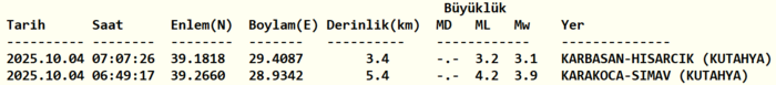 Detay:https://t.co/qzpVK8zQXk@afadbaskanlik @trthaber @anadoluajansi— AFAD Deprem (@DepremDairesi) October 4, 2025